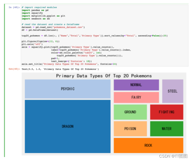 在下面的代码中,我们选取了前 20 个口袋妖怪,并根据前 20 个口袋妖怪的主要类型创建了一个树形图.