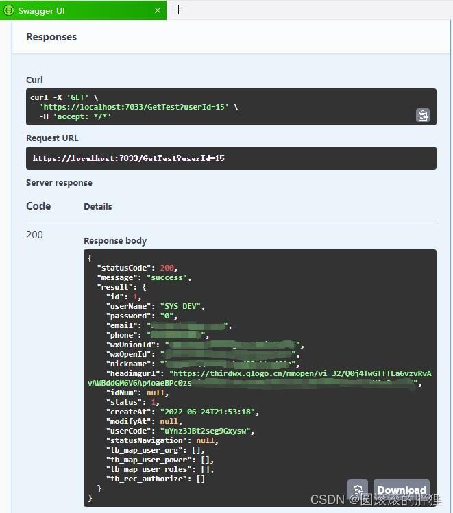然后运行程序,打开swagger,测试API,得到如下结果