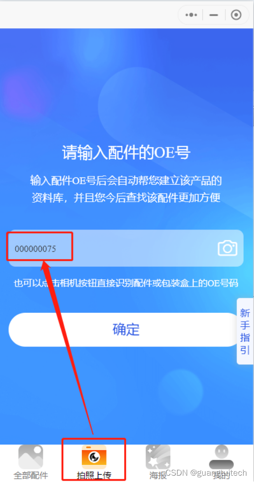 2.2 点击“拍照上传”,输入SAP中的产品自编号,点击确定,创建一个产品档案。