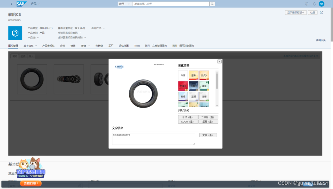 同时还能在SAP里对图片进行编辑,比如自动抠图,增加底图、logo、水印,一键生成电商图片。。。