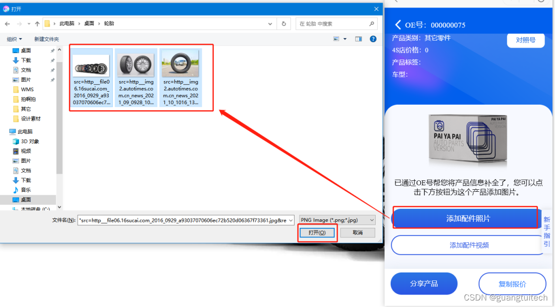 2.4 上传后点击全部配件=>点击对应产品编号档案=>即可看到刚上传的图片/视频。