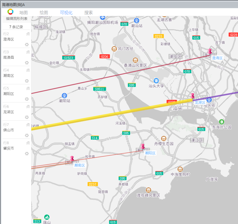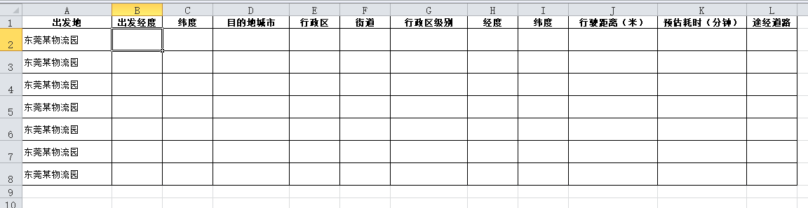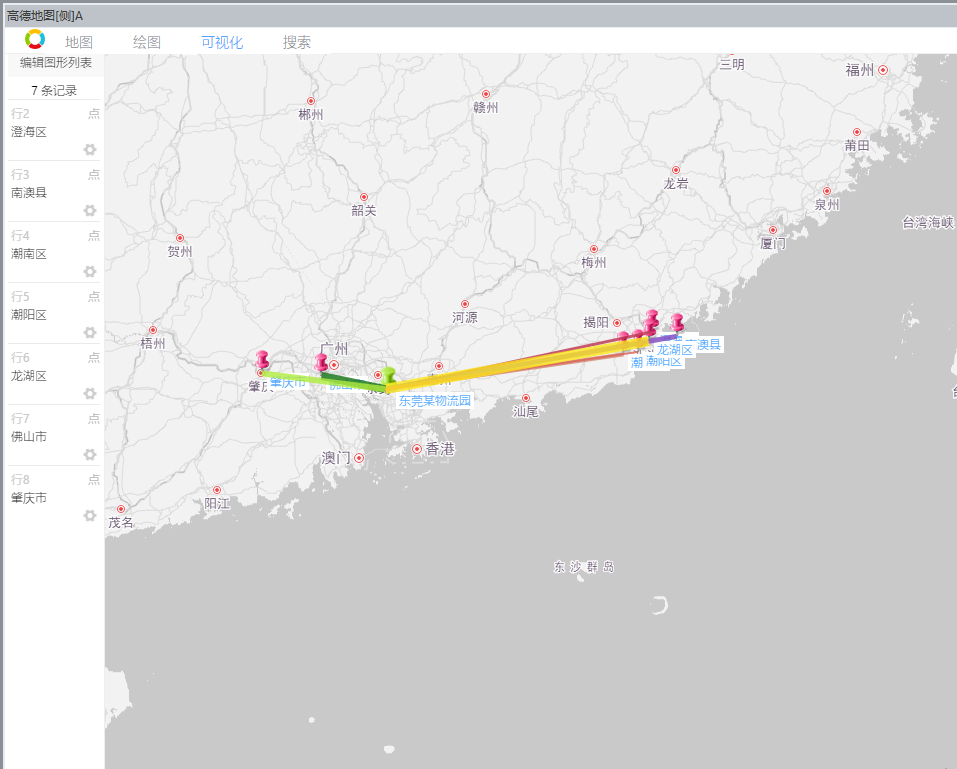 例如:物流出发地为东莞某物流园区,目的地为广州市内多个街道,如下图