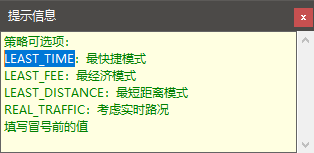 此外,小O地图的路径规划提供的多种策略,可以在上表中修改其他策略,从而获得其他策略的结果,和之前的做比较,从而获得相对较经济的路线。