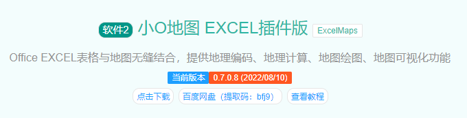 小O地图EXCEL插件软件,登陆官网 www.gis9.com 下载。