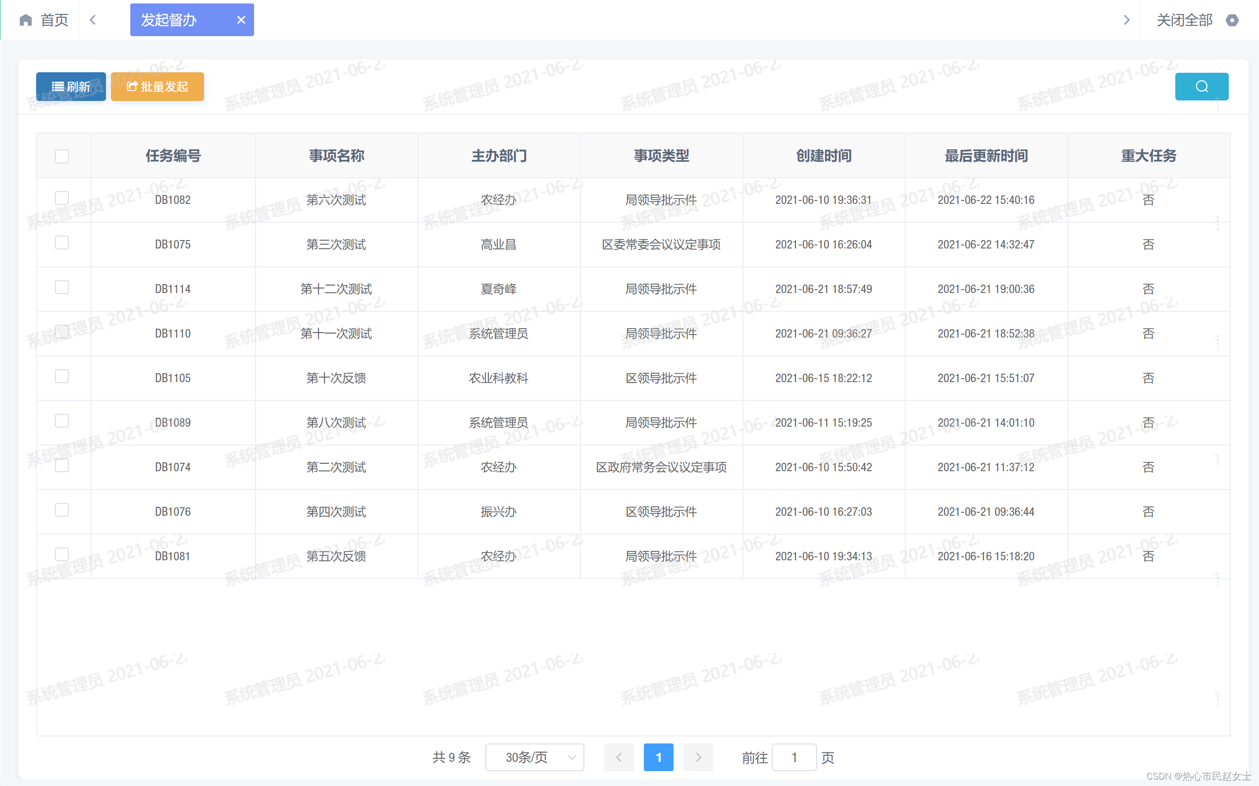 督办报表:督办员、办公室主任、中心主任、分管领导可查看全中心所有督办事项的列表,支持查询功能。