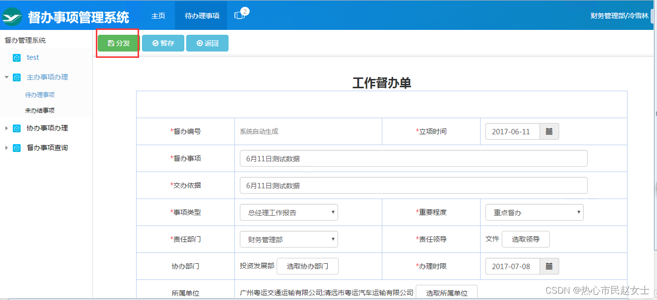 任务分派:将任务分派给承办单位牵头人;