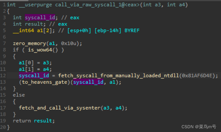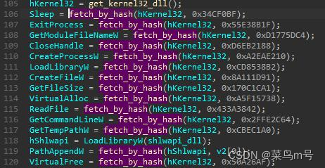 为了干扰分析,开发者使用了被称之为 hell gate技术,也就是从 NTDLL 或其他内存模块动态提取和调用系统函数。可以追溯到 here,如果想深入了解可以参考 malwarebyte一篇16年的实例。