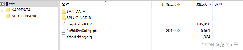 目录下另外两个文件都是加密的,想知道它们的内容就必须要知道NSIS的加载链:实例