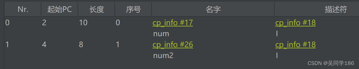注意:这是Test1()的,由于没有static修饰,因此局部变量表中有this关键词
