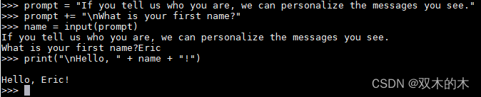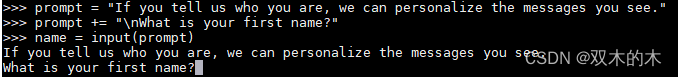 >>> name = input(prompt) #回车之后效果如下: