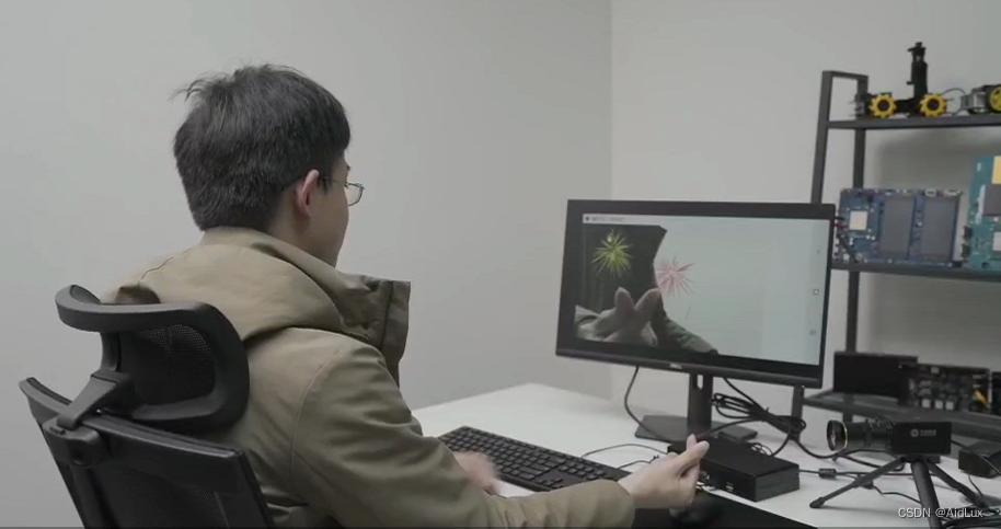 例如在实现基于动捕技术的AI应用时,用摄像头采集人物动作,利用盒子的AI能力对画面进行同步分析处理,并在屏幕上给出反馈。