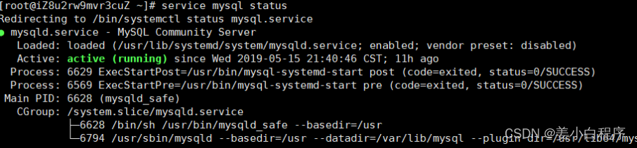 查看MySQL服务运行状态: