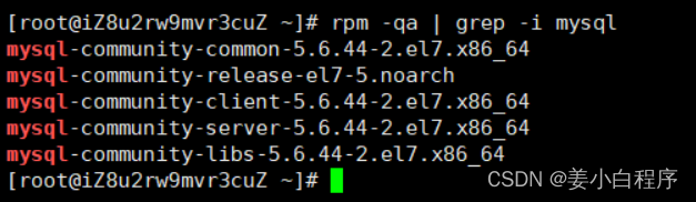 输出结果表示,我安装的MySQL Server,Client都是5.6.44的,因为我系统支持的版本是要5.7+的版本,所以不得不卸载重装
