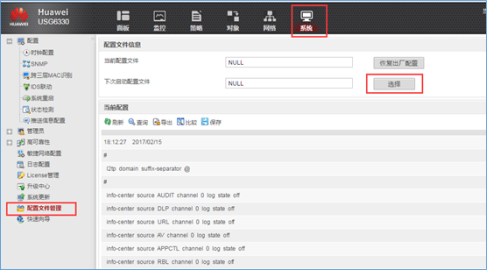 登录系统后,我们推出快速向导;依次点击“系统”—“配置文件管理”—“下次启动配置文件”,勾选上之前的配置文件,并点击“下载”。