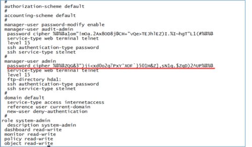 admin对应的新密码复制出来后,我们使用文本方式打开刚刚下载配置文件(无需解压),在aaa模式下,替换掉manager-useradmin 下面的 password那一行,并保存配置。