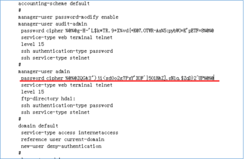 配置文件下载好后(在此处我们就已经能读取出之前的配置了),我们再次从console口登录设备,先将修改admin密码的命令(密文)复制出来 ;