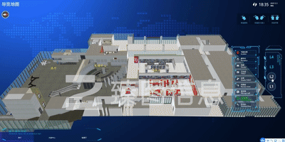 对商业园区进行基于数字孪生仿真建模渲染发布,以二三维可视化室内外地图浏览模式,实现楼层切换、跨楼层、楼宇路线导航、公共设施查询某个商铺等信息功能,通过蓝牙定位技术,实时显示用户所在位置。用户选择起始点自动规划一条高效、便捷的路线进行导航,在导航过程中可自由切换楼层场景,指引用户到达目的地,即使在GPS信号薄弱的室内也能提供精确导航服务。