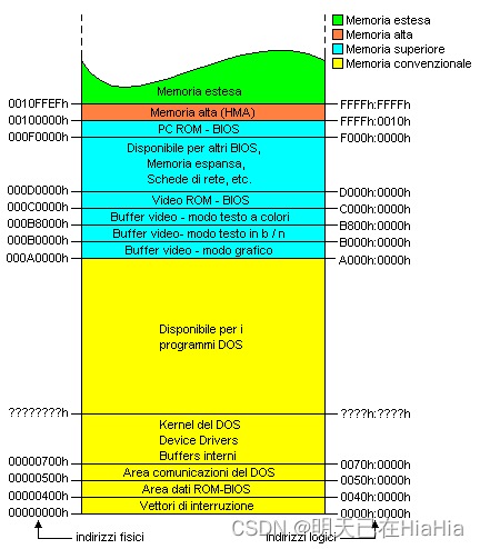 系统硬件使用的存储器地址被安排在高端,地址从0xA0000H(684KB)开始的384KB中,其中有用于显示的视频缓冲区;