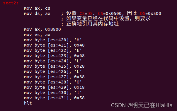 对于昨天的第二扇区的代码,直接把数据放到了0xB8000H开始的彩色字符模式视频缓冲区内。