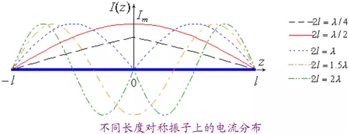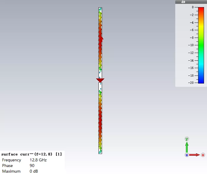 可以看出,几个不同频点状态下,其电流分布不同,这其实就是对应于理论上不同电长度下,Dipole上的电流分布。这里简单定义上图从左到右依次为Dipole的1/2波长模式,全波长模式和3/2波长模式。