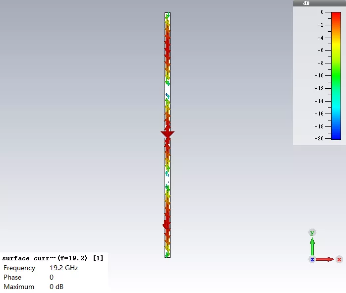 CST时域求解器:天线在6.185GHz和19.16GHz附近处于谐振状态