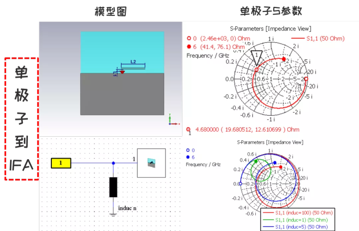 如果将集总参数的并联电感转化为接地的微带线,这即是IFA天线的雏形。此时可以通过变化接地微带线尺寸对天线的工作频率和阻抗特性进行调节,相较于单极子而言无需增加额外的匹配元件。