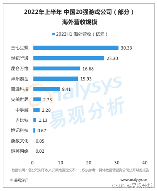 图 1-2 2022上半年中国20强游戏公司(部分)海外营收规模