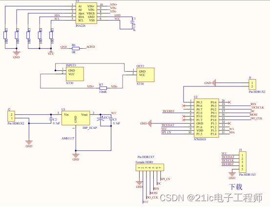 根据INA226的手册,简单的画了一个PCB,将单片机、OLED屏也集成到了PCB中,AD工程请见附件。