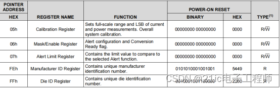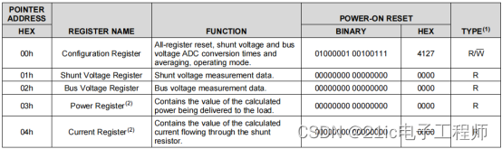 INA226有10个寄存器,其中4个是可读可写,6个只能读取