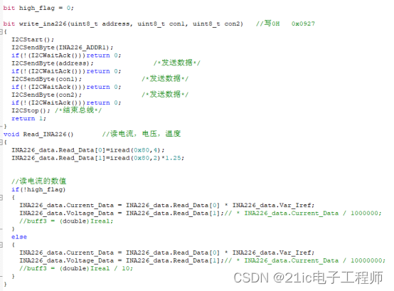 1. INA226驱动,IIC通信,需要在单片机进行IIC驱动编写,具体可见附件的IIC_INA226.c