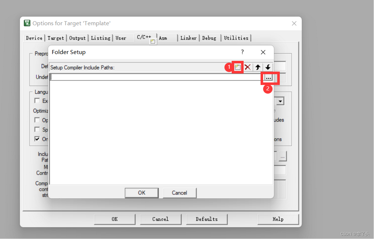 16) 接下来我们要在 MDK 里面设置头文件存放路径。也就是告诉 MDK 到那些目录下面去