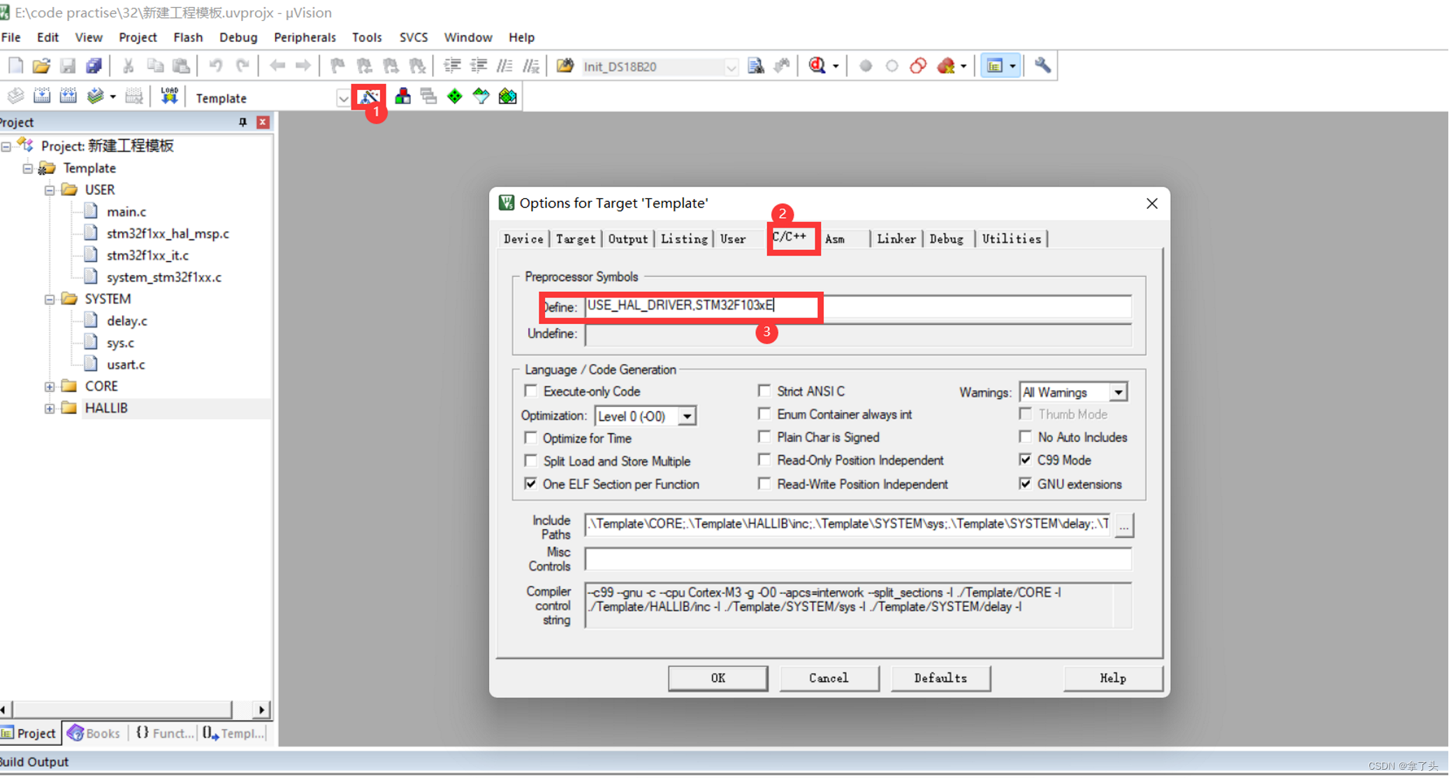 后在 Define 输入框连输入: USE_HAL_DRIVER,STM32F103xE。
