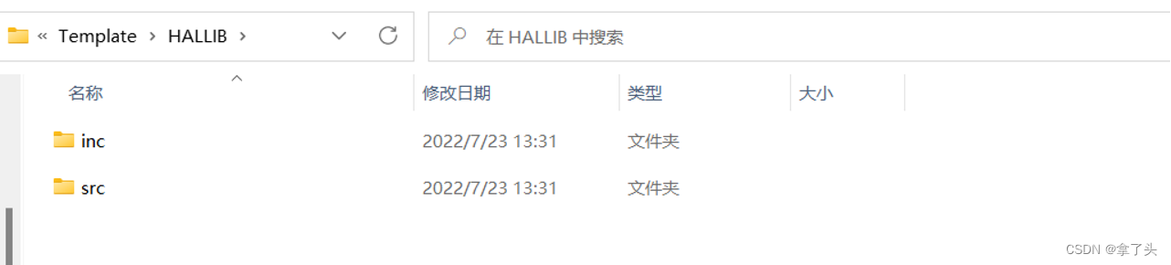 夹复制到我们刚才建立的 HALLIB 文件夹下面。 Src 存放的是固件库的.c 文件, Inc 存放的是对