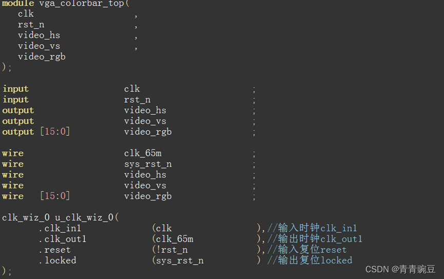 图8 VGA显示八种颜色的彩条顶层文件的例化