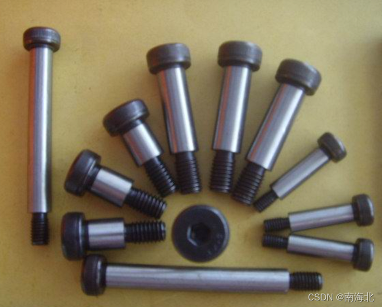 整根杆只有下面一小段有牙,螺纹直径比杆直径小。这种螺丝可用于穿过轴承固定工件。
