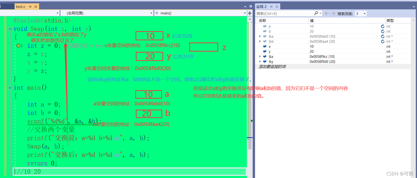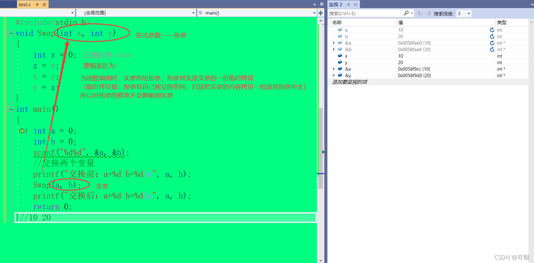 注意:int c是整型,这里传的是字符x,因为字符本身是ASCII值。