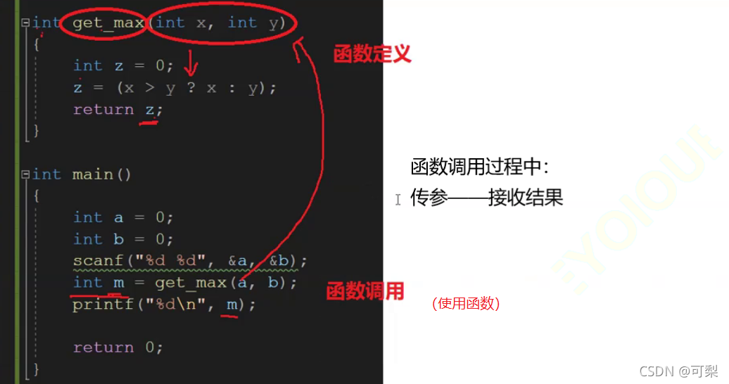 y=f(x)这是数学中的函数。在C语言中的函数是:子程序。