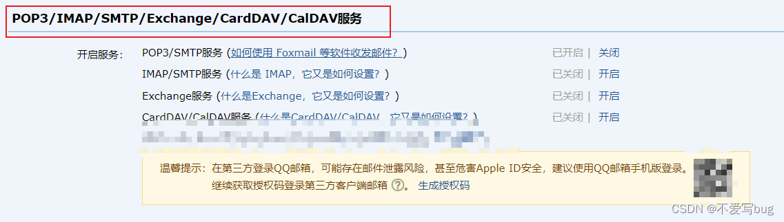 需要到QQ邮箱中心获取授权码(授权码是16位)