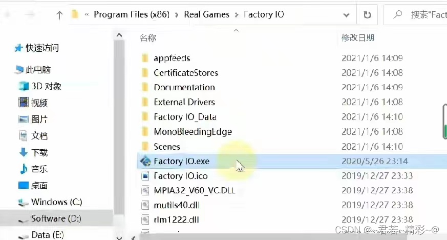 2.找到安装解压后的另外两个文件,打开第一个文件,找到factoryio.exe,复制后找到上图MPLA32_V60_VC.DLL将它替换掉。