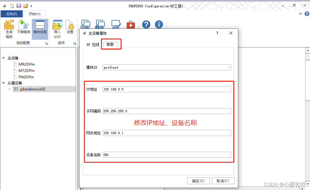 注意:PROFIBUS转PROFINET网关的IP地址及设备名称要与PROFIBUS转PROFINET网关配置软件中保持一致