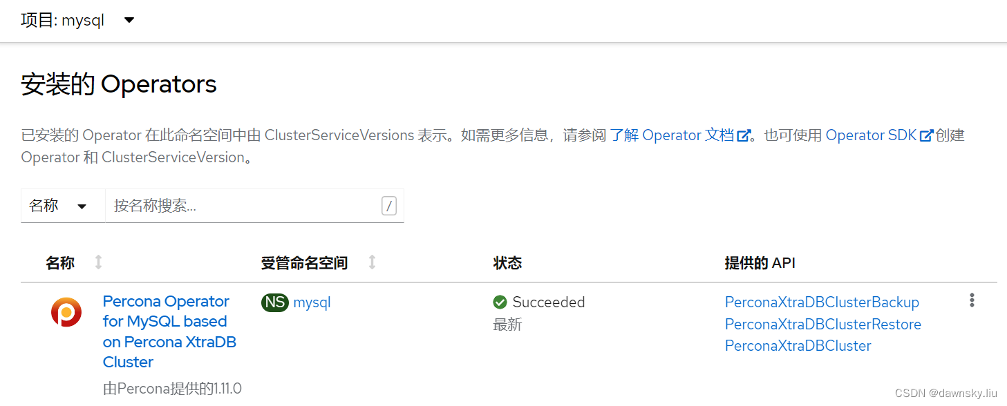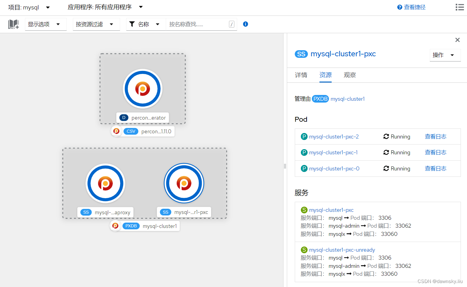 - 进入安装成功的 Percona Operator for MySQL based on Percona XtraDB Cluster。
