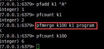 pfmerge newkey key1 key2 :将key1与key2 中的value全部放入新的键newkeyzhong