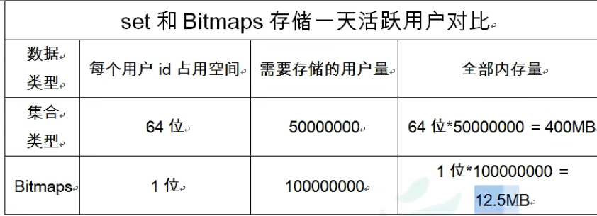 Set和Bitmaps存储一条活跃用户所占内存对比