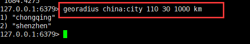 geodist china:city chongqing shenzhen km: geodist计算键中两个value值重庆和深圳的举、距离,以km为单位;