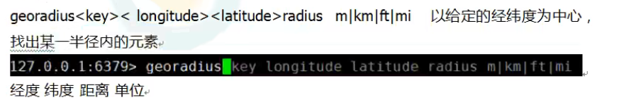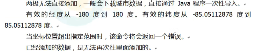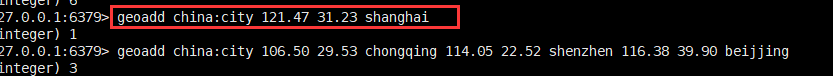 geoadd china:city 经度 纬度 shanghai:给china:city这个键添加一个位置为xxx的value,名为上海;
