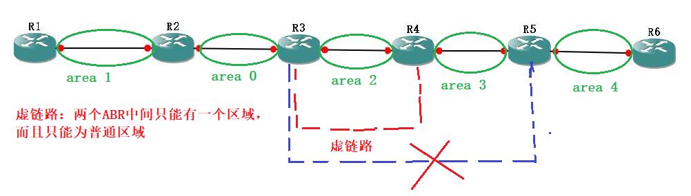 - 由于网络的拓扑结构复杂,有时无法满足每个区域必须和骨干区域直接相连的要求,为解决此问题,OSPF提出了虚链路的概念。