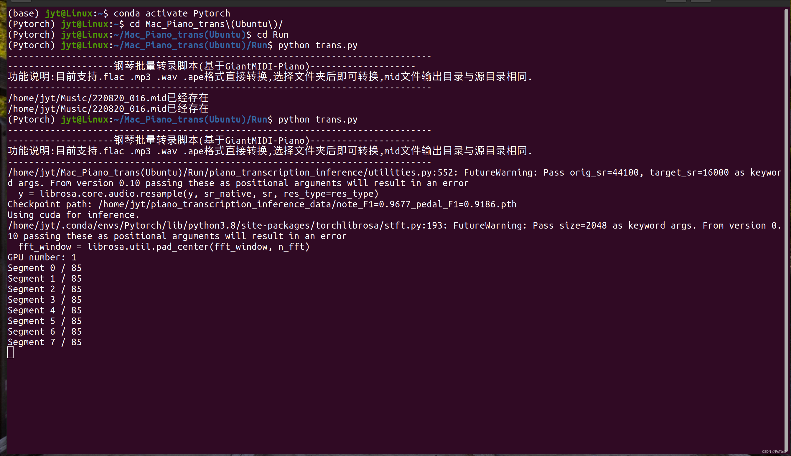 在Piano_trans---Run路径下激活Pytorch环境运行: