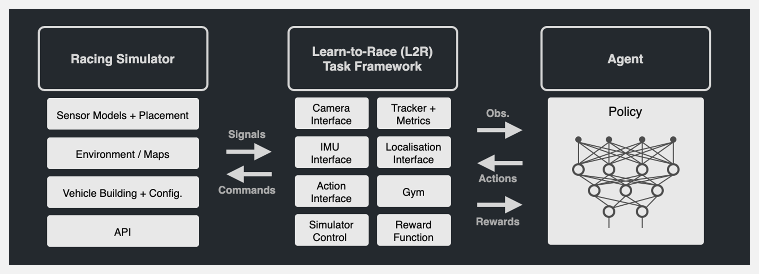 Learn-to-Race 是一个符合 OpenAI gym 标准的多模态控制环境,agents 在这里学习如何比赛。与许多简单的学习环境不同,l2r 的学习环境是围绕着 Arrival 的高保真赛车模拟器建立的,具有完整的软件在环(SIL),甚至是硬件在环(HIL)的模拟能力。