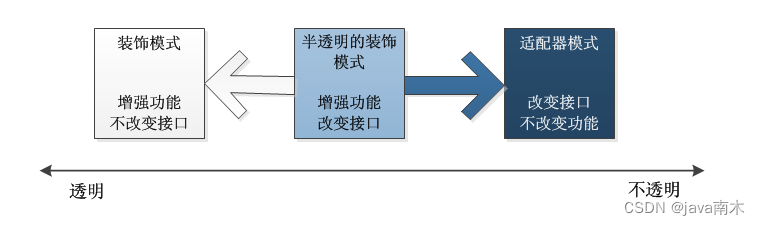 装饰模式和适配器模式都是“包装模式(Wrapper Pattern)”,它们都是通过封装其他对象达到设计的目的的,但是它们的形态有很大区别。