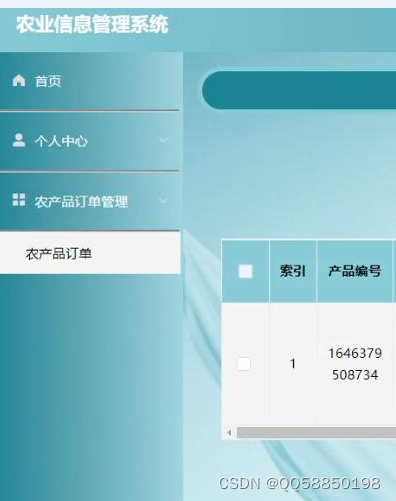 用户登陆后,在系统首页可以实现首页,个人中心,农产品订单管理等功能